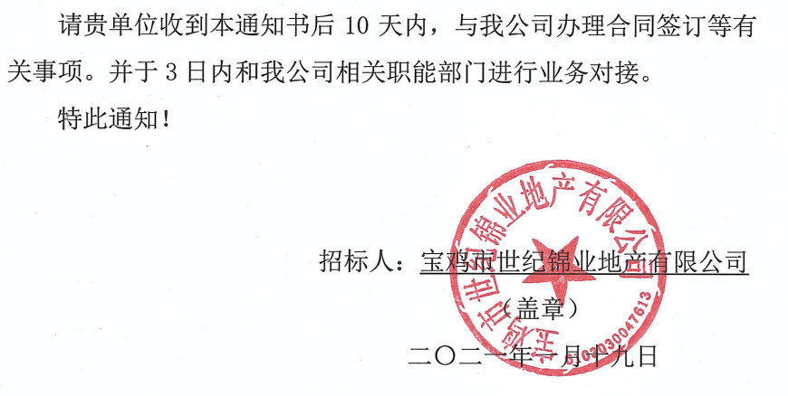 世纪锦业●锦业府邸项目水土保持方案编制及验收服务询价中标通知书